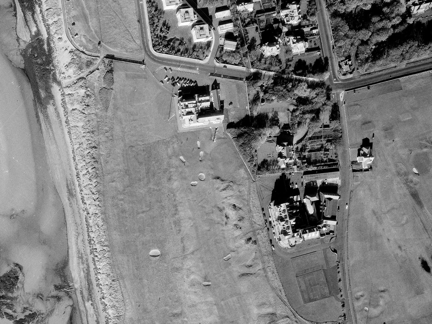 By their nature, Scottish links golf courses are invariably sited adjacent to potential invasion beaches, and therefore also feature in our military-declassified holdings as a result of defence planning (and possibly occasional requests from golf-inclined RAF Group Captains) during and after the Second World War. Aerial photography is thus a valuable tool in recreating the history of golf course evolution, as well as tracking the impact of climate change on coastal erosion at golf courses.
