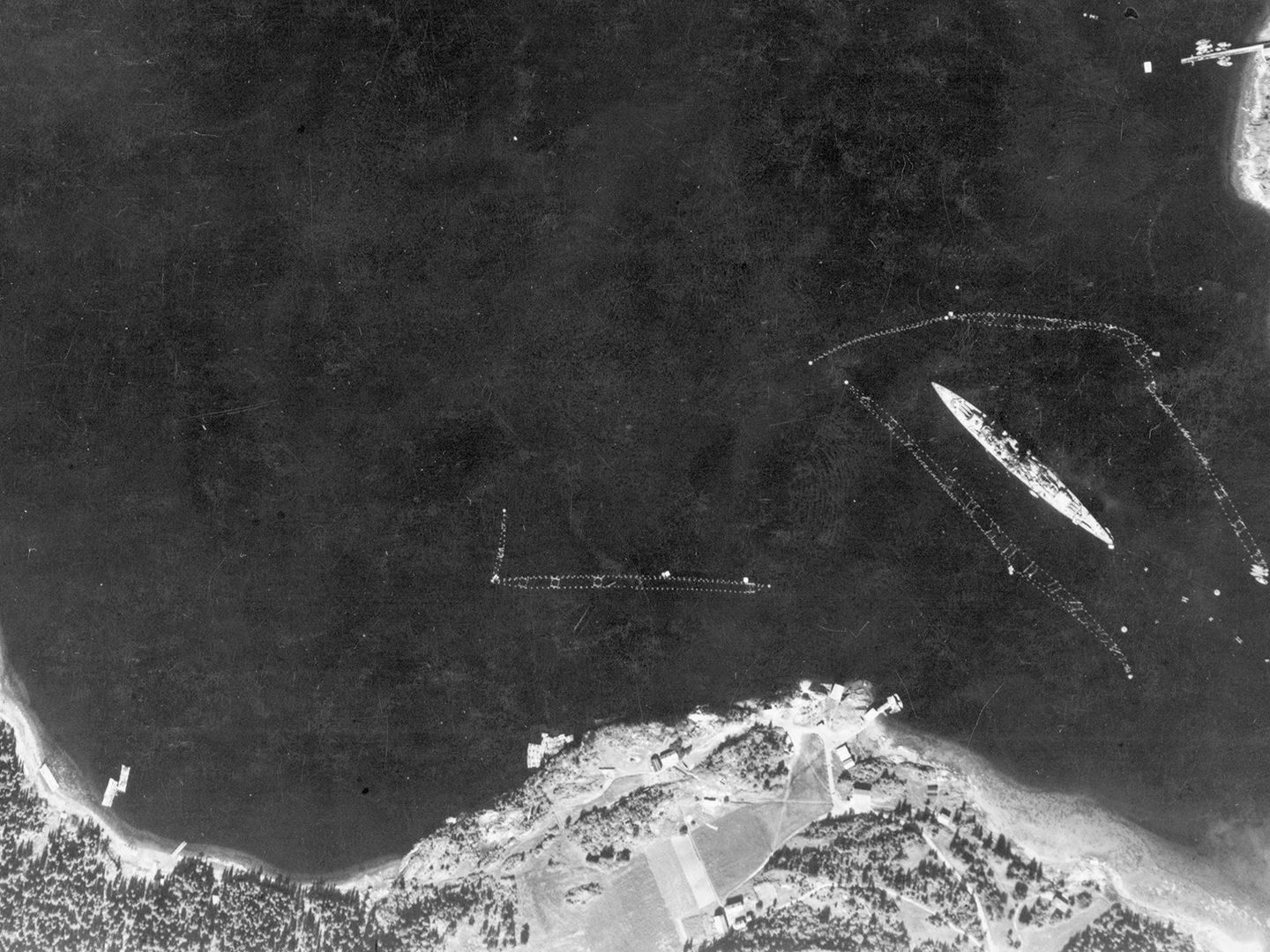 Admiral Scheer in an image highlighted on the note, photographed at the occupied Polish port of Świnoujście (Swinemünde in German); Collection: ACIU, Sortie: T/0616, Frame: 0907 (19 September 1941)